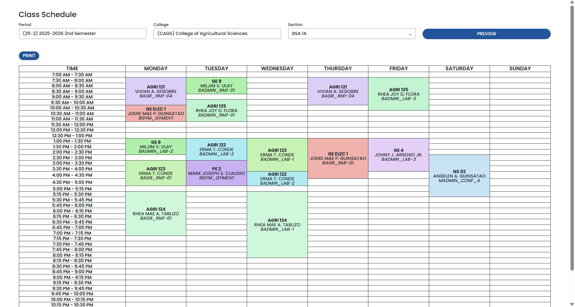 Description: A centralized web-based system that publishes and manages class and examination schedules, faculty teaching loads, and room assignments to ensure transparency, coordination, and efficient academic planning.